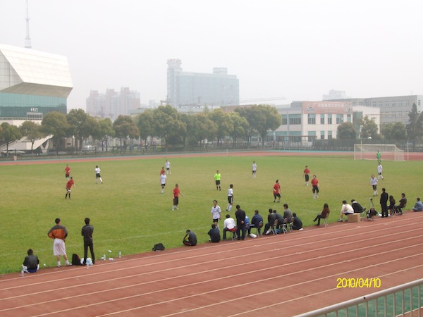 体育館横の陸上競技場は、トラックの中がサッカー場となっているおなじみの造り。