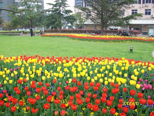 一週間前よりも咲いているチューリップの数が増えていてきれい。