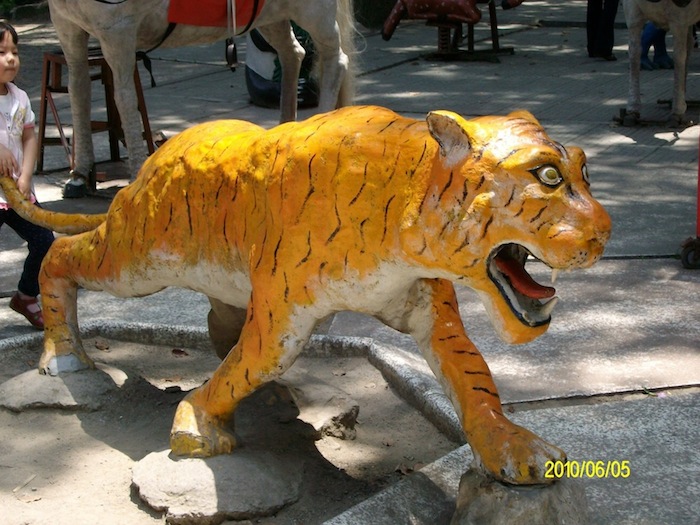 公園の売店横には、日本の公園でもよく見かける動物の置物というかオブジェというか、そういうものが置いてありましたが、その中の虎のデザインがヘンに気に入って撮影!