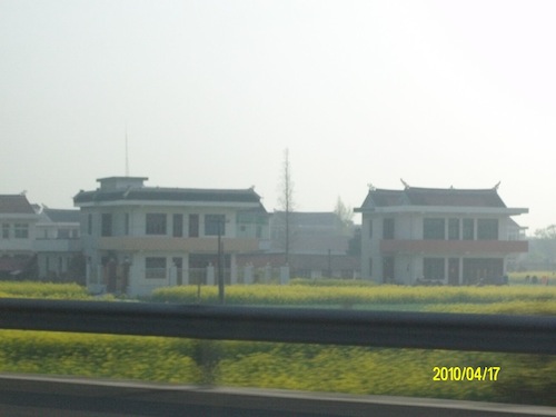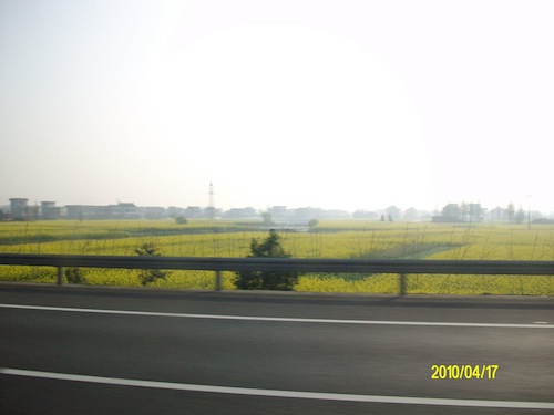 何日か前の記事にも書いたんやけど、今の季節、菜の花がめちゃめちゃ咲き乱れています。先ほどの苏通大橋を渡ってしばらくいくと、そういった農村の風景になりました。
