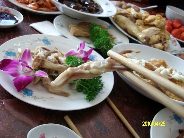 そんな訳で紹興酒しか飲むものが無かった。この辺では普通、紹興酒も白酒も、お椀に入れて飲むので、乾杯が辛かった(笑)