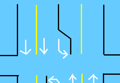 つまり、中央よりの車線で走行していた場合、交差点で対向車線の左折車と正面衝突するような構造(^^;