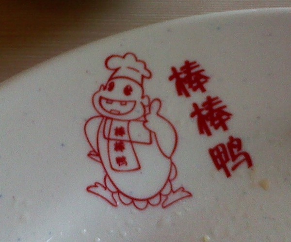 で、そのチャーハンをおいしく食べてたんやけど、このお店、チェーン店のようで、お店のイメージキャラクターがあり、そのキャラがお皿に描かれてあった。