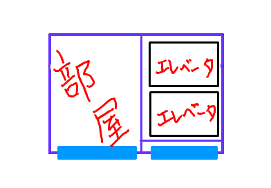 端っこの部屋は、エレベータのスペースがあるから通常の半分やったんやね。